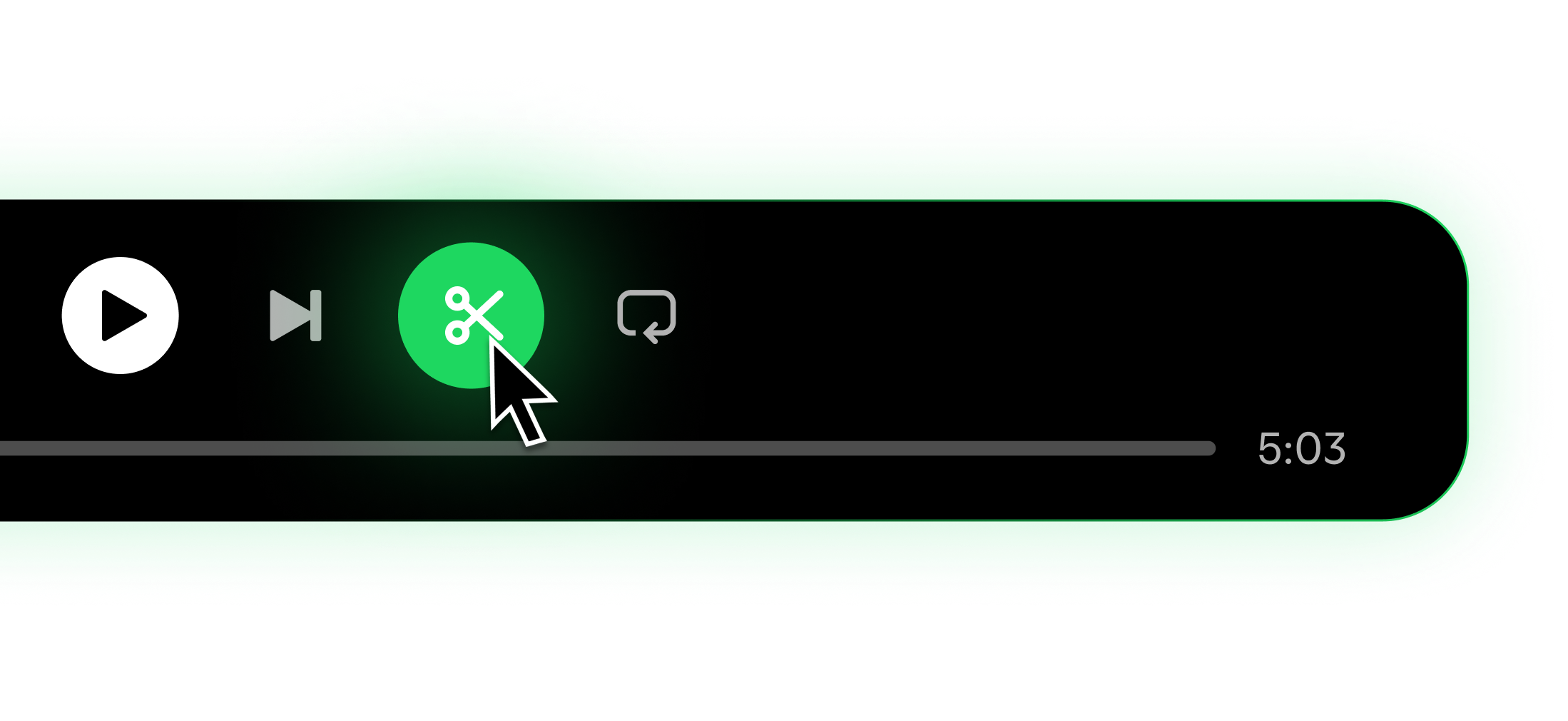Found that perfect 30-second section? Click the scissors, drag the handles, done. Your moment is saved instantly.